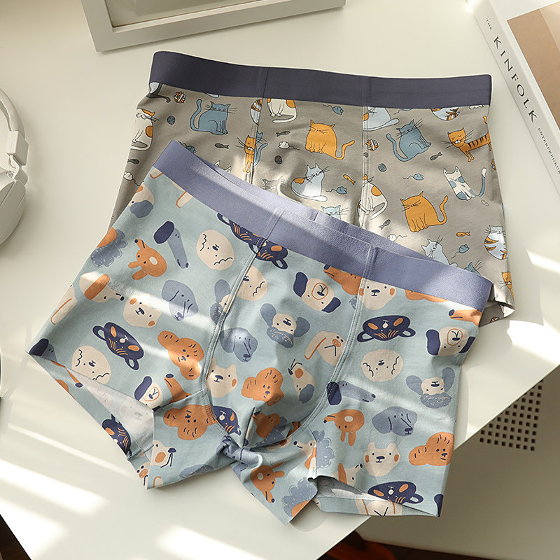 3条 元气潮男~高端无痕卡通四角内裤男士纯棉透气青年男生平角裤