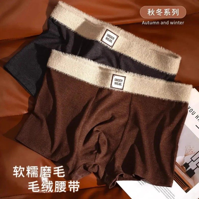 钞尤乾秋冬软糯无痕磨毛10A抑菌裆男士内裤美拉德亲肤保暖套装