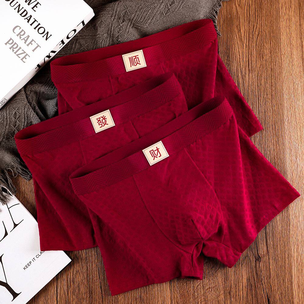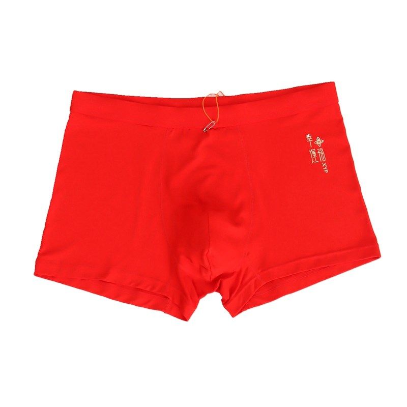 广珠袜业严选店爆款新年男款男士红内裤平角大码纯色四角裤本命年