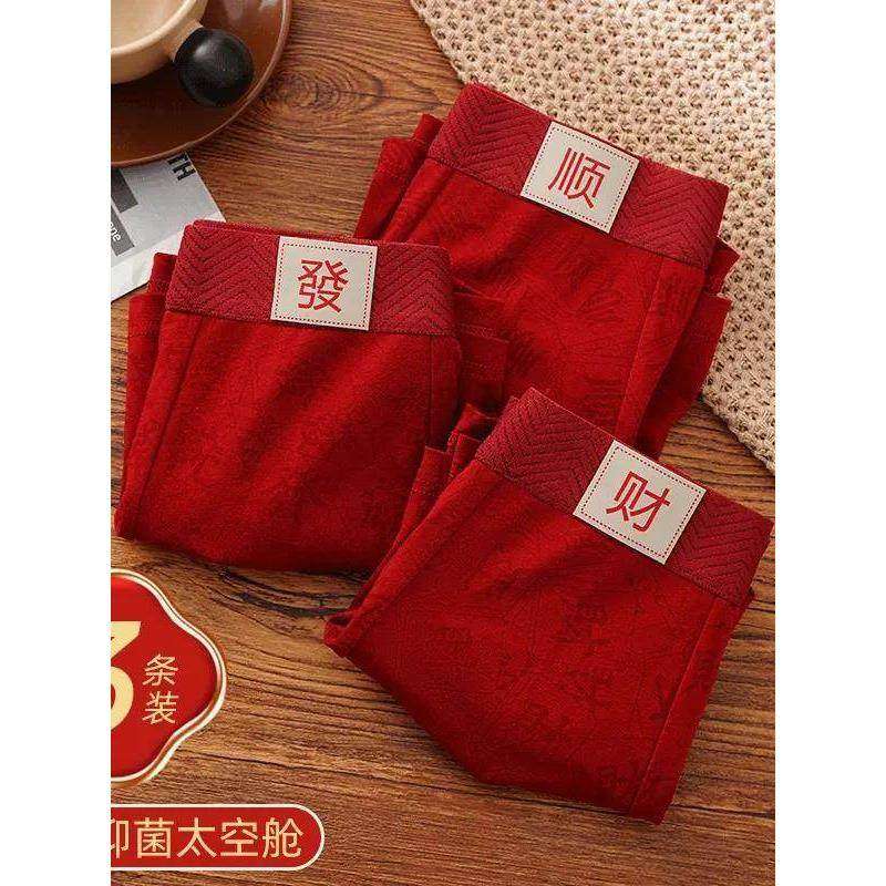 纯棉男士内裤本命年舒适透气抑菌鸿运暴富四角裤喜庆结婚平角裤男