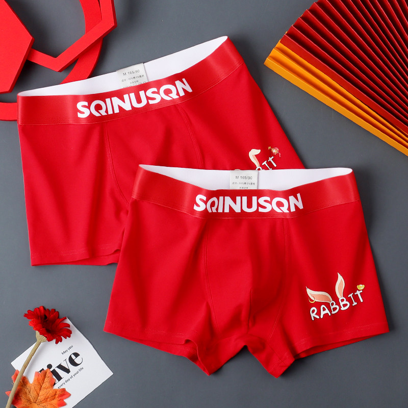 本命年男士内裤男大红兔年平角裤透气舒适个性四角裤男生短裤底裤