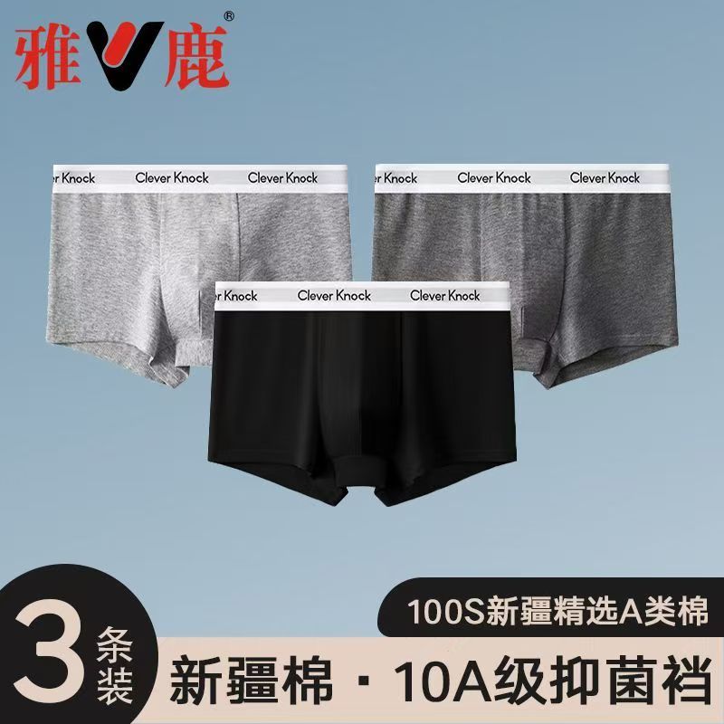 雅鹿男生纯棉内裤简约薄款青年四角短裤抑菌透气宽松平角裤衩超薄