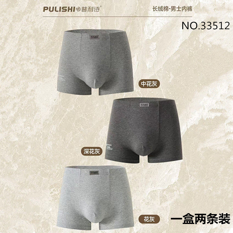普利诗内裤男长绒棉10A抑菌青年中腰透气平角裤两条装33512