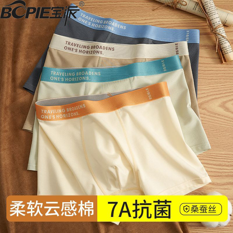 【宝派】青少年男孩内裤男士胖男生棉7A抗菌桑蚕丝平角内裤