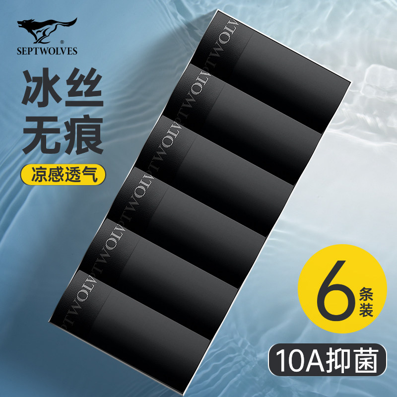 七匹狼冰丝男士内裤男生抗菌无痕平角裤衩新款透气黑色四角短裤头