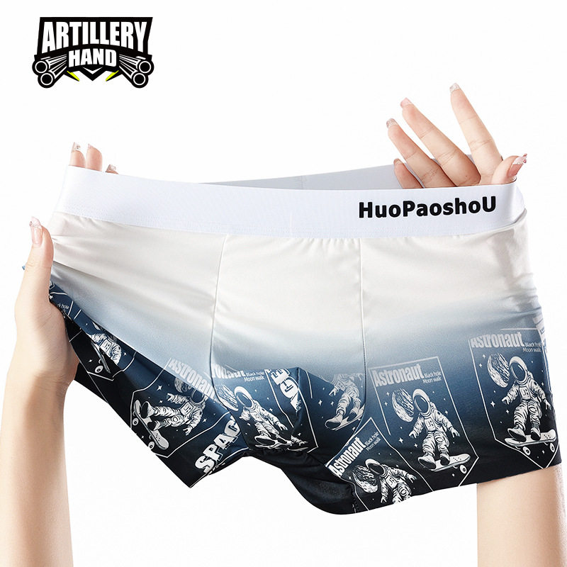 火炮手新款渐变印花男士平角裤男内裤男四角裤星期裤修身透气四角