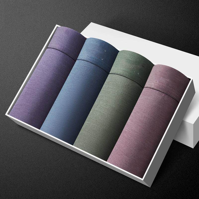 4条装牛奶丝面料男士内裤男平角裤中腰青年薄款透气吸汗四角短裤