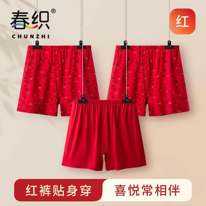 泽宇甄选优品结婚大红色内裤男本E命年四角裤b衩喜庆丝绒h底裤短
