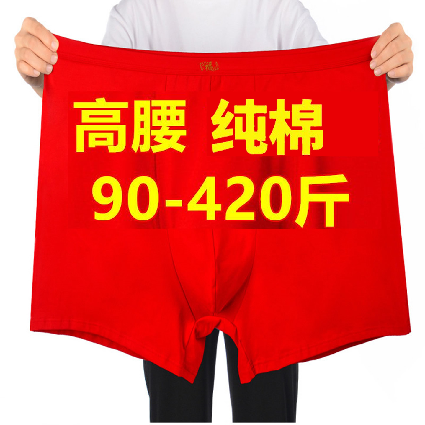 高腰深档男士内裤红色本命年纯棉平角短裤头中老年加肥加大码裤衩