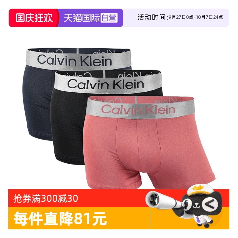 【自营】Calvin Klein/凯文克莱男士平角短裤CK舒适四角内裤3条装
