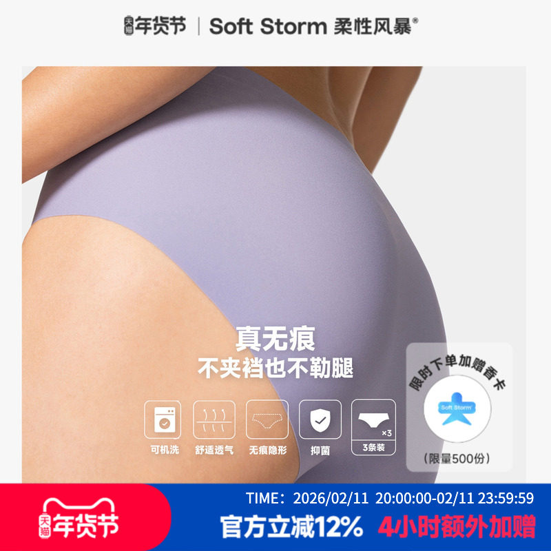 柔性风暴2026新款7A级抗菌无痕内裤女士健身中腰三角裤纯棉底裆