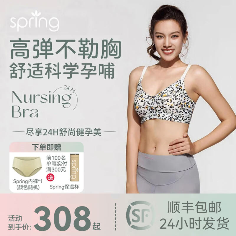 Spring Maternity喜临哺乳内衣文胸产后喂奶孕妇哺乳文胸时尚聚拢高弹透气不勒胸 云豹哺乳文胸(不含内裤) S-M-L