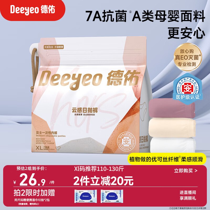 德佑一次性内裤女孕产妇出差生理期内裤7A抗菌XL码7条【 安全灭菌】