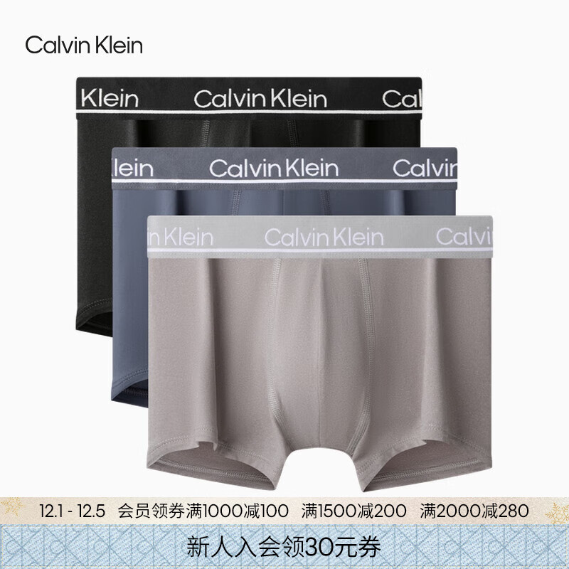Calvin Klein内衣男士本命年新年红三条装提花ck轻薄高弹低腰防夹臀平角内裤男 0NJ-太空黑/星空灰/大理石灰 3条 XL