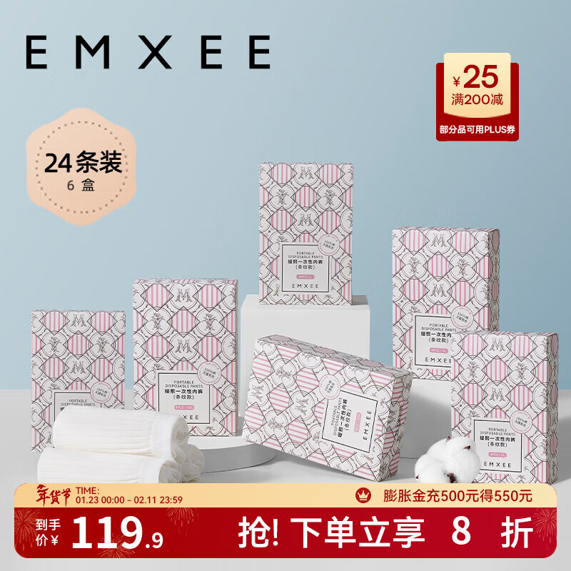 嫚熙(EMXEE)一次性内裤纯棉无菌旅行短裤产妇月子女士出差日抛免洗条纹款 6盒24条 L(建议100斤以下)