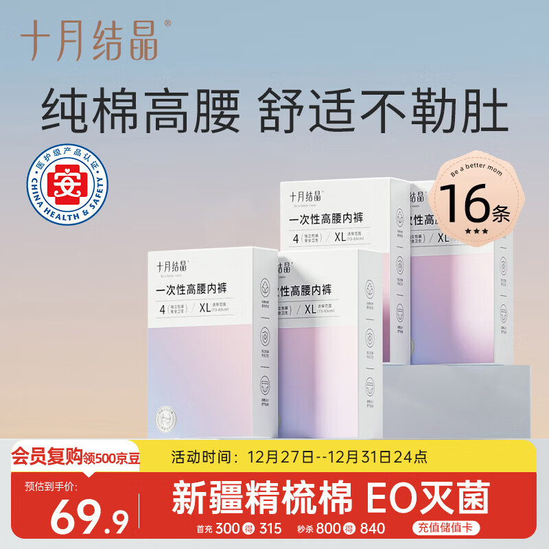 十月结晶一次性内裤高腰孕产妇出差旅行免洗纯棉内裤16条XXL【安全灭菌】