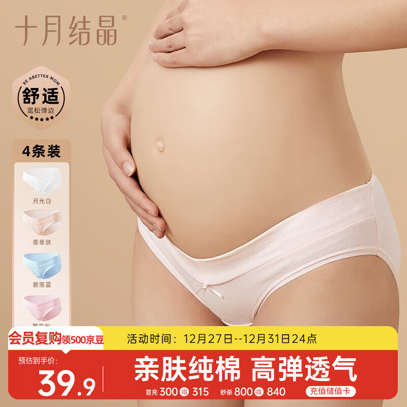 十月结晶孕妇内裤低腰棉孕早中期孕晚期孕产妇托腹内裤女4条装 XL码