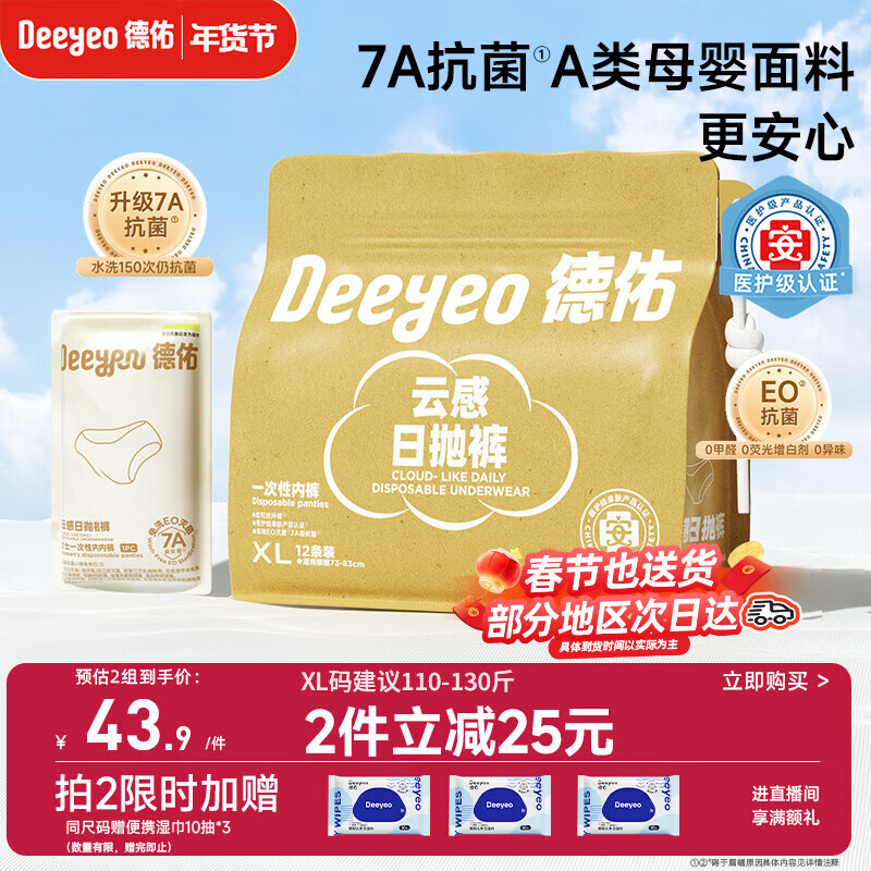 德佑一次性内裤女孕产妇出差生理期内裤7A抑菌XL码12条【 安全灭菌】