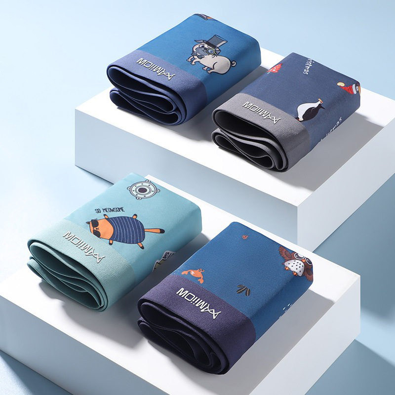 3条潮牌男士内裤纯棉柔软透气四角裤头卡通国潮U囊袋个性平角短裤