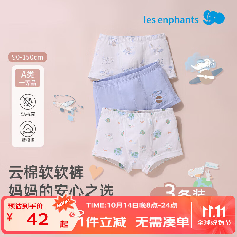 丽婴房【5A抗菌】儿童内裤5A抗菌内裤A类平角内裤全棉内裤3条女童内裤 活力飞行-男童(5A抗菌纯棉) 3条 140 cm