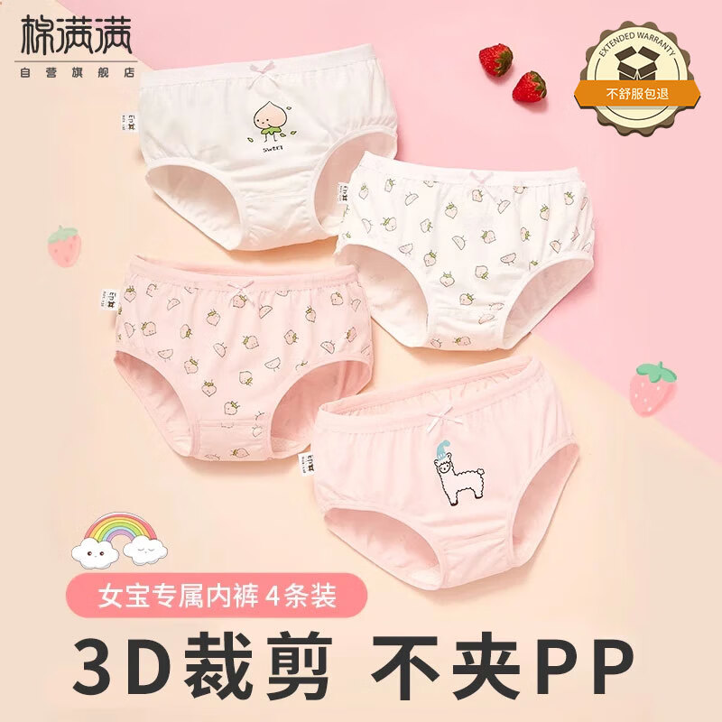 棉满满儿童内裤女童纯棉透气三角裤头不夹屁股女孩大童平角棉短裤头4条