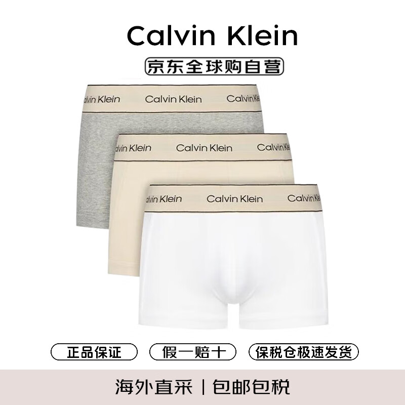 Calvin KleinCK 男士平角内裤 3条装 LV00NB4446 2XK蚝灰色/灰色/白色 XL