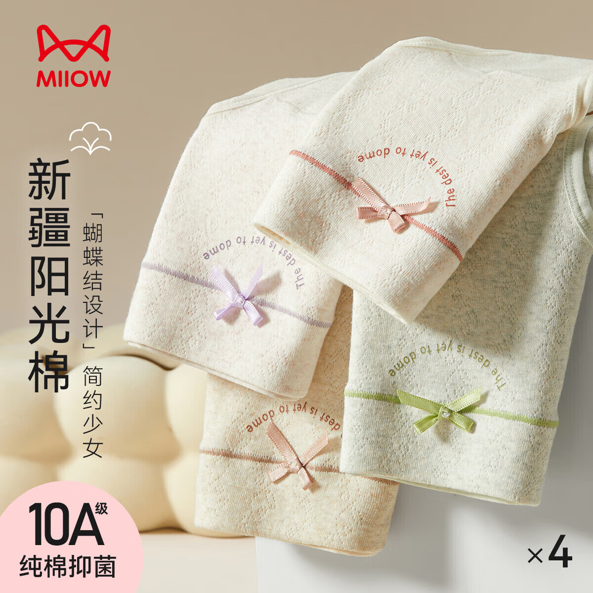 猫人【10A抑菌】女士内裤女纯棉100%棉抑菌底裆中腰大码少女三角裤