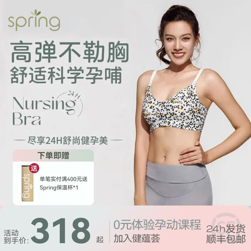 Spring Maternity喜临哺乳内衣文胸产后喂奶孕妇哺乳文胸时尚聚拢高弹透气不勒胸 云豹哺乳文胸(不含内裤) S-M-L