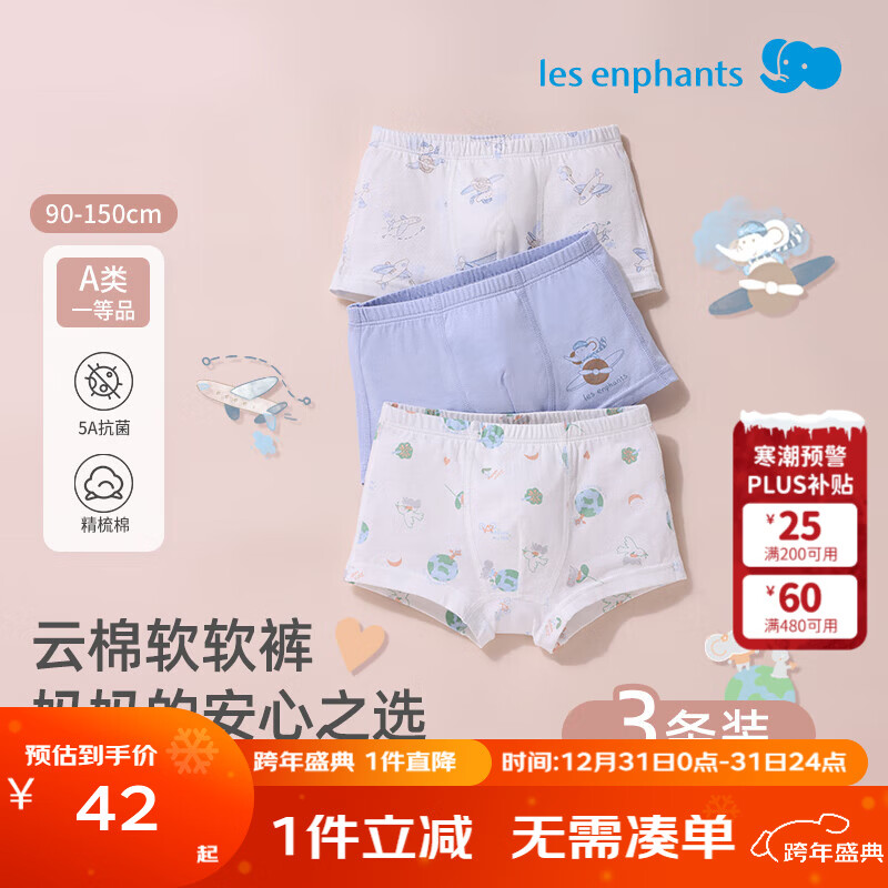 丽婴房(Les enphants)【5A抗菌】儿童内裤5A抗菌内裤A类平角内裤全棉平角女童内裤3条装 蓝色飞行-男童5A抗菌纯棉 3条 130 cm