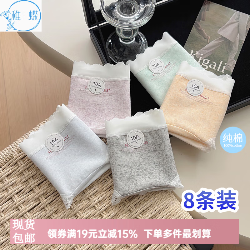 稚蝶法式镂空蕾丝女士内裤纯棉7A抗菌中腰A类三角裤 混色 颜色随机发 8条 XL (120-140)