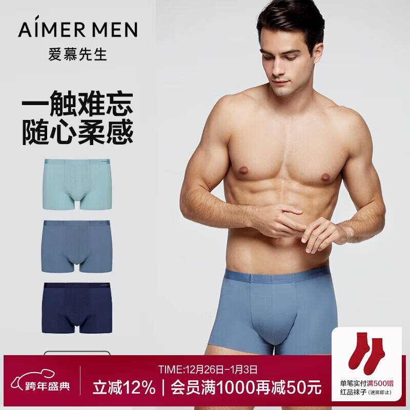 爱慕先生【3条装】男士内裤莫代尔抗菌净痕平角裤