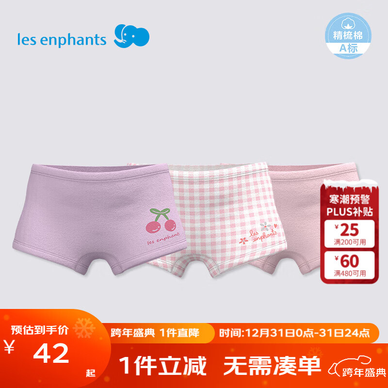 丽婴房【5A抗菌】儿童内裤5A抗菌内裤A类平角内裤全棉内裤3条女童内裤 蝴蝶小象-女童(5A抗菌纯棉) 3条 150 cm