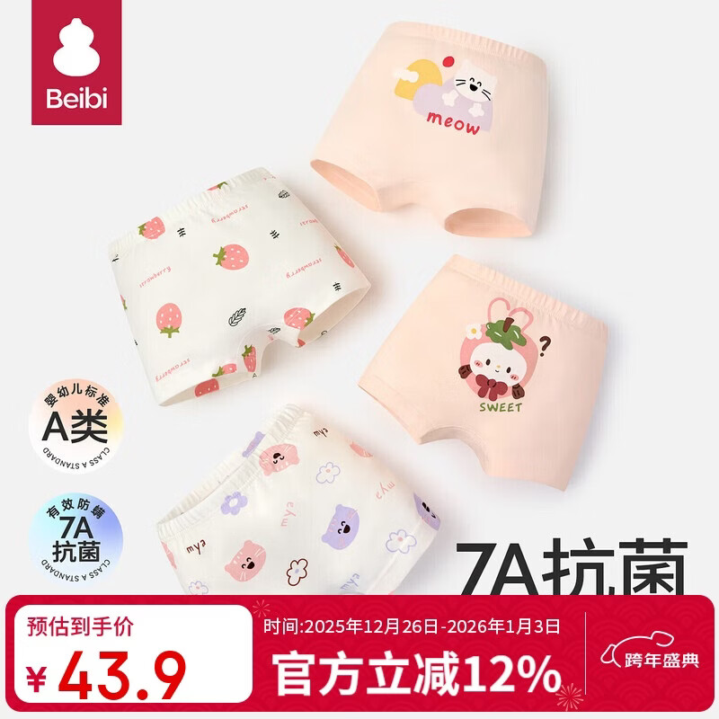 贝比儿童内裤女中大童A类平角纯棉婴儿不夹pp透气舒适四角短裤