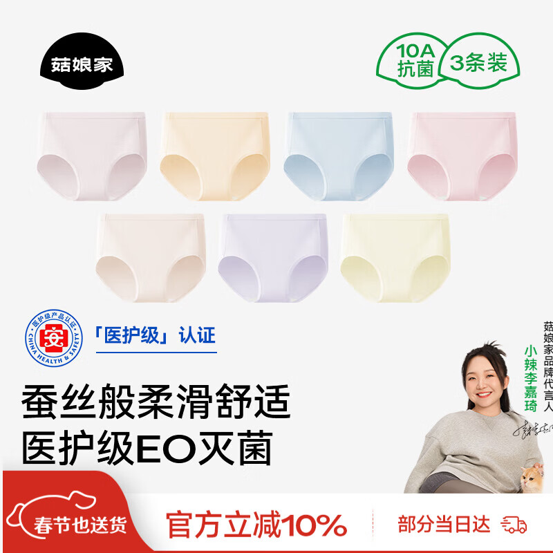 菇娘家莫代尔10A银离子纯棉内裤女士抗菌底档开袋即穿透气无痕三角裤