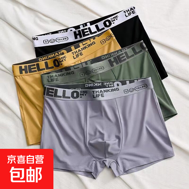 四条装hello高端男士内裤男高弹透气男款四角短裤内裤裤头平角裤 729款四条装(至少2个图案) 3XL 建议140-160斤