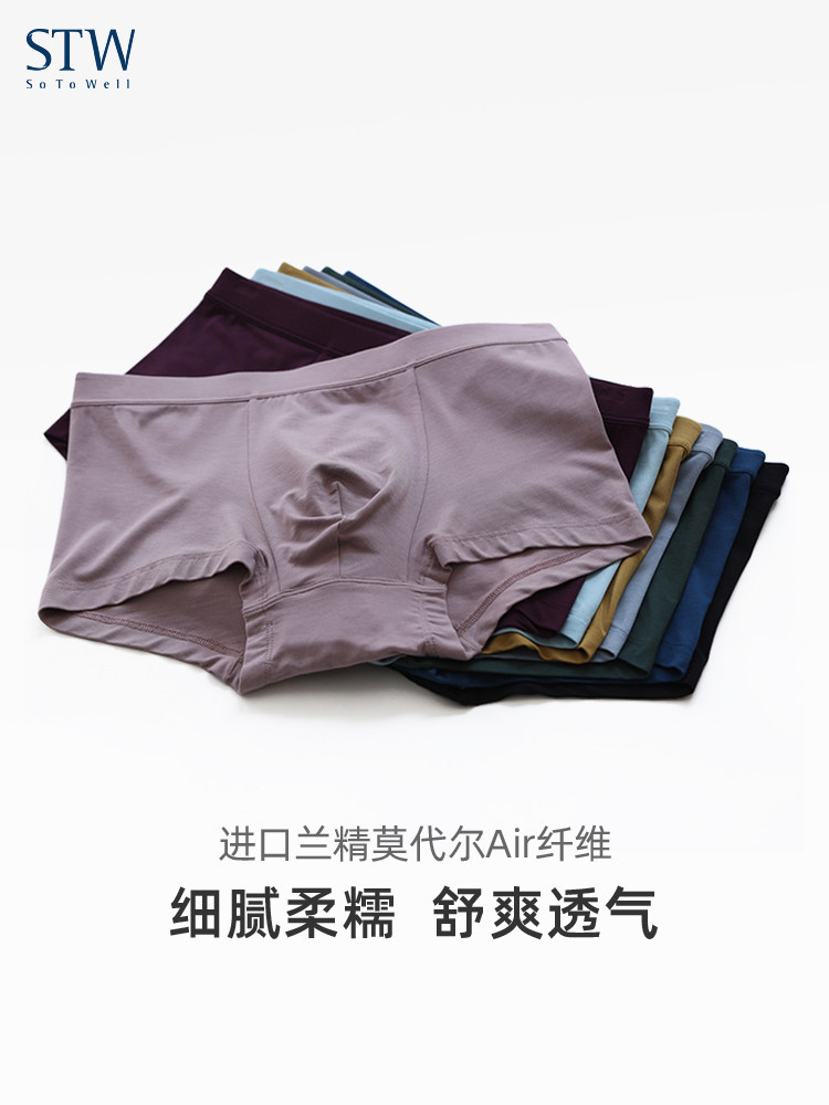 2条装 STW男士内裤莫代尔平角裤宽松大码透气青年纯色四角裤新款