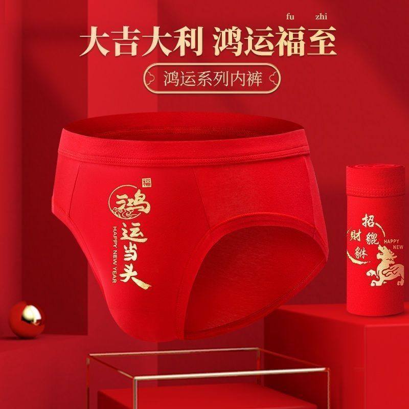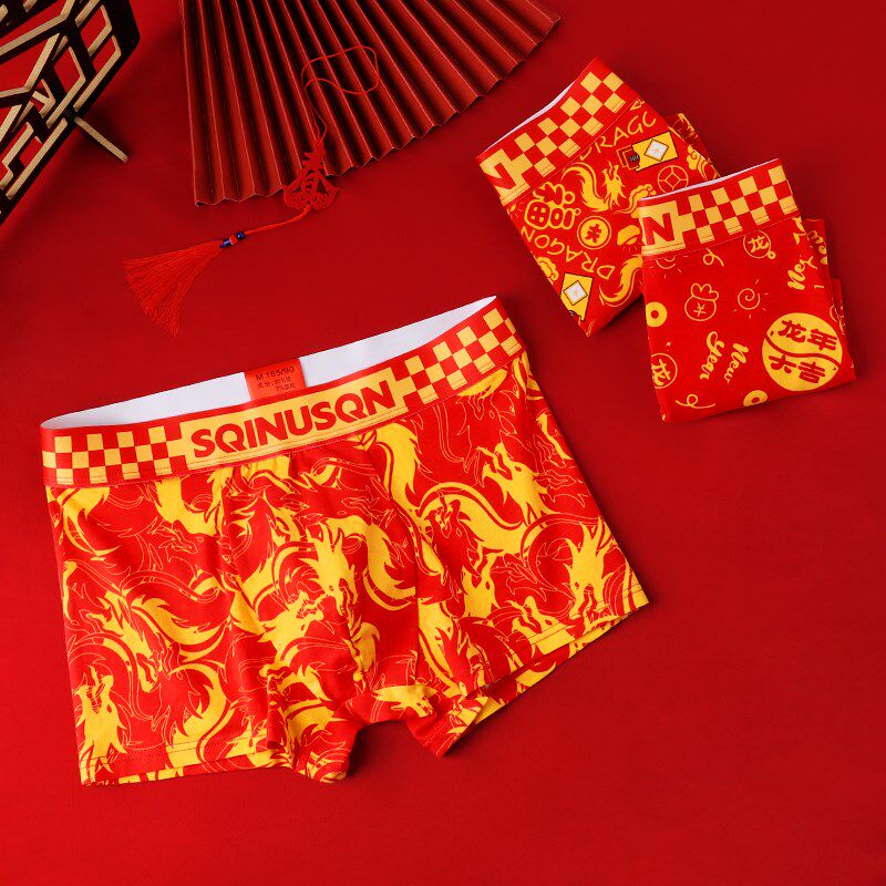 男士内裤男棉质鸿运本命年短裤大红色平角裤结婚礼物属龙四角裤头