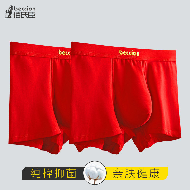 本命年红色男士纯棉内裤新年红运舒适四角秋冬男生潮流平角短裤衩