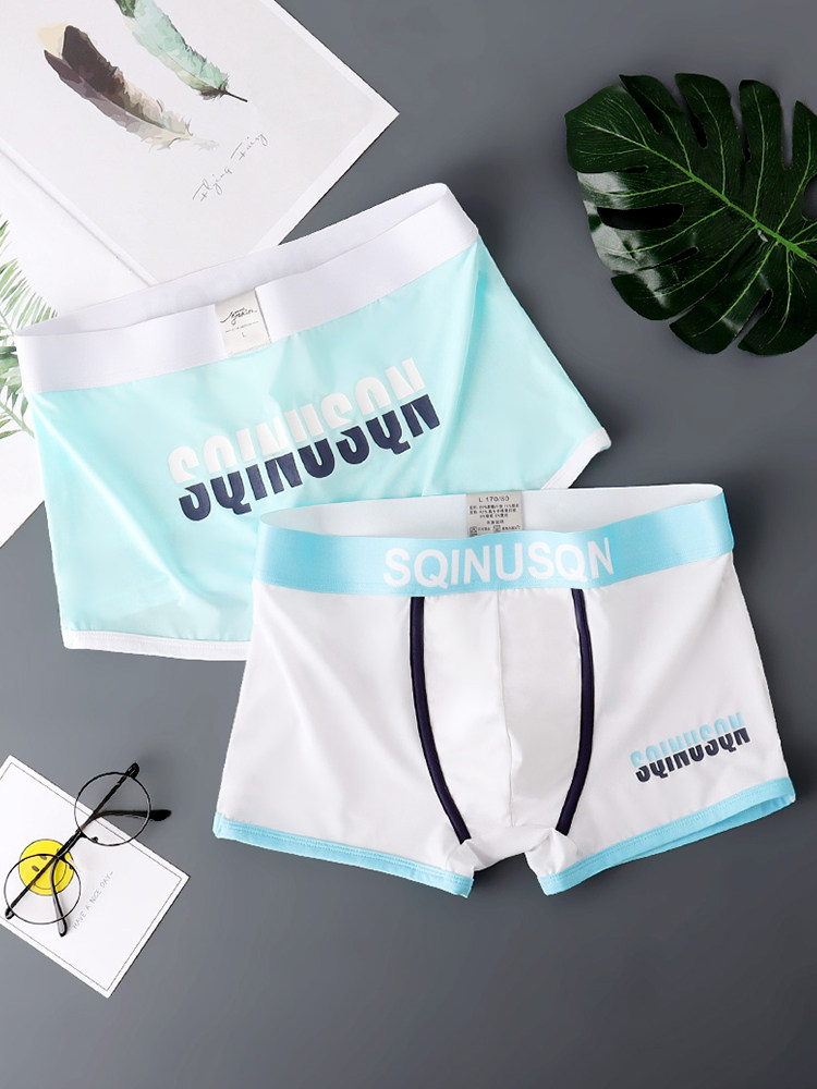 薄款冰丝男士内裤男平角裤夏季舒适底裤潮流个性四角裤衩男生裤头