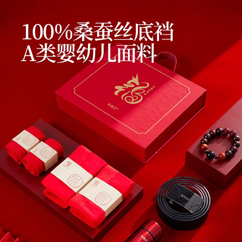 新品高端男士真丝红内裤蛇年本命年礼盒真皮腰带父亲生.日礼物红