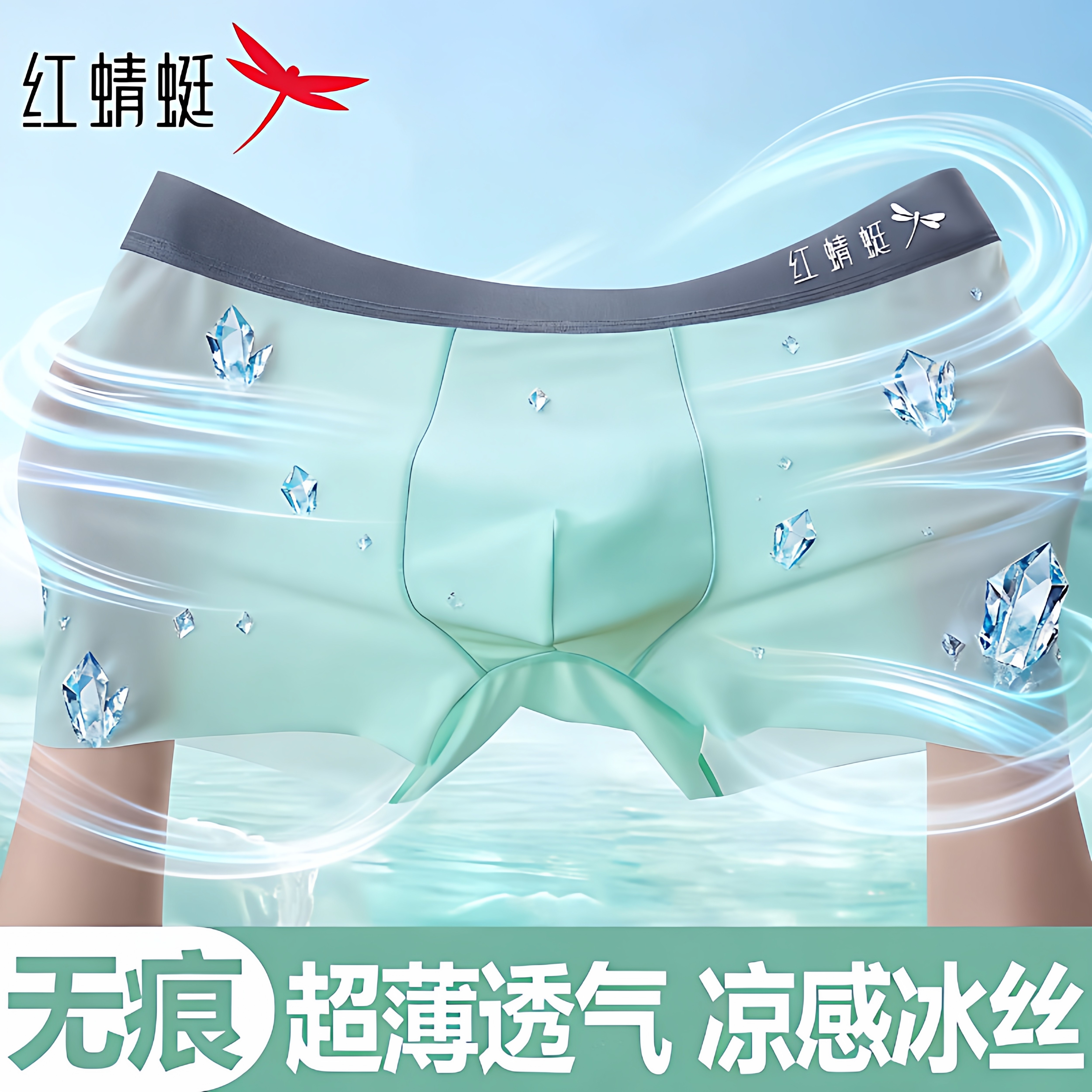红蜻蜓冰丝男士内裤男2026新款10A抗菌轻薄透气无痕大码四角短裤