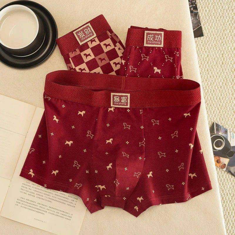 沧虹优品男士内裤10A抑菌印花红内z裤棉质新年喜庆平角裤大码下装