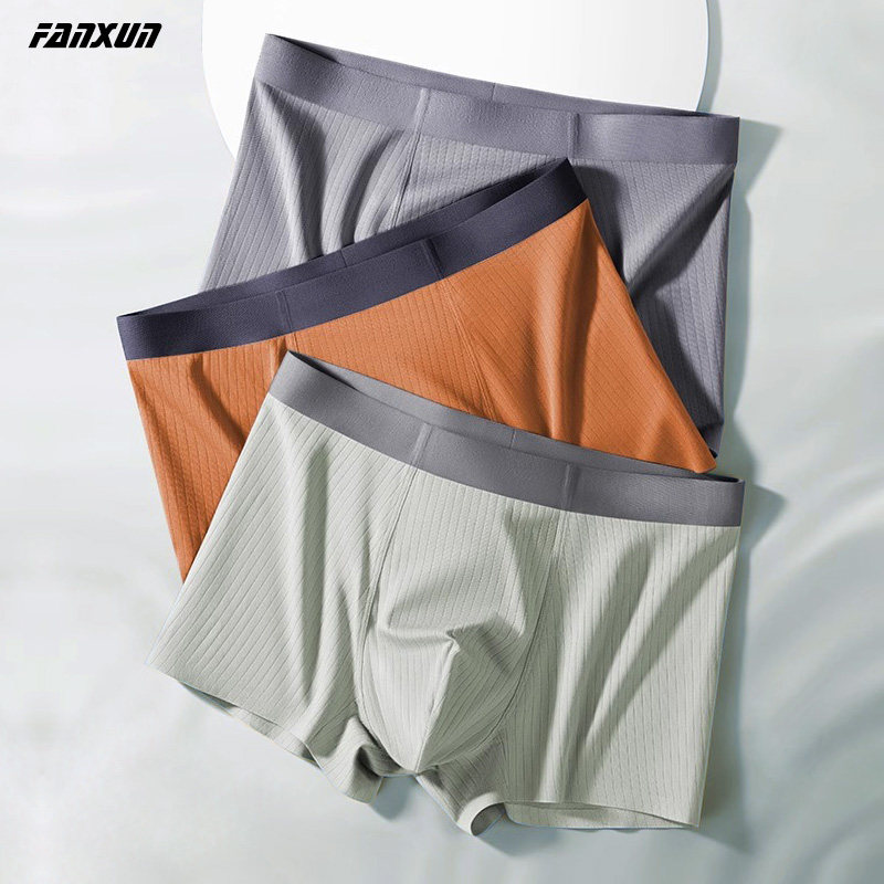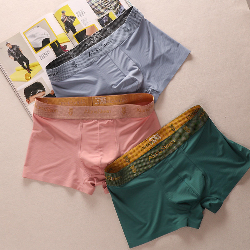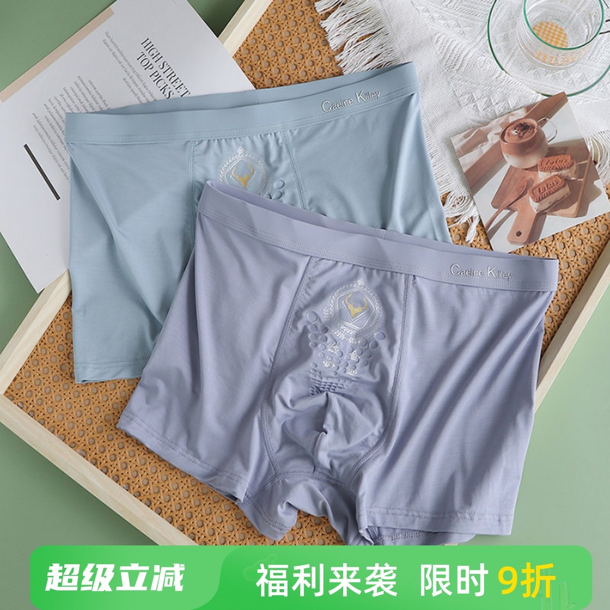 魅丽翘精品3条盒装莫代尔棉无痕平角内裤男士抗菌桑蚕丝四角裤头