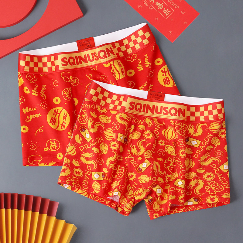 本命年大红男士内裤舒适透气男平角裤中腰喜庆青年四角裤头裤衩潮