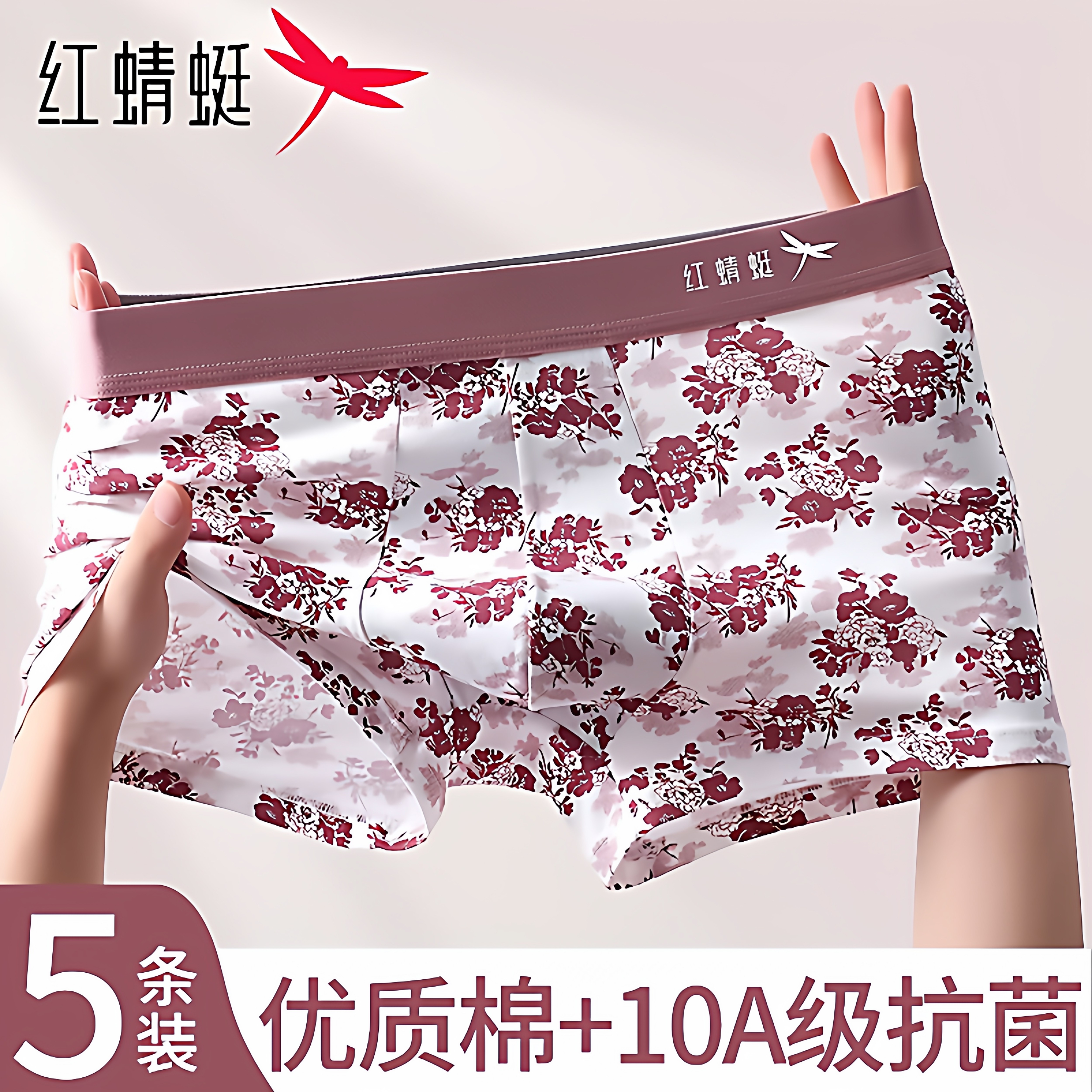 红蜻蜓男士内裤男纯棉10A抗菌轻薄透气四角裤青少年舒适平角短裤