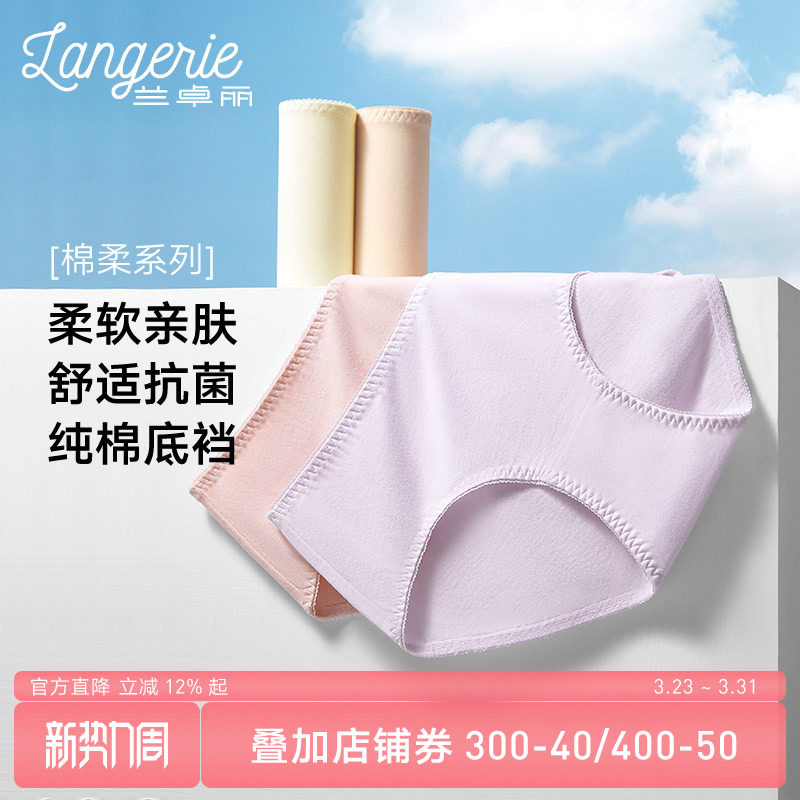【4条装内裤】兰卓丽内裤女中低腰平角裤柔软亲肤纯棉抗菌底裆