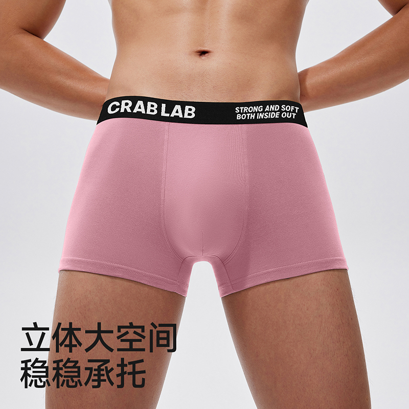 螃蟹秘密粉色男士内裤四角裤100%纯棉裆抗菌男生运动四角短裤衩款
