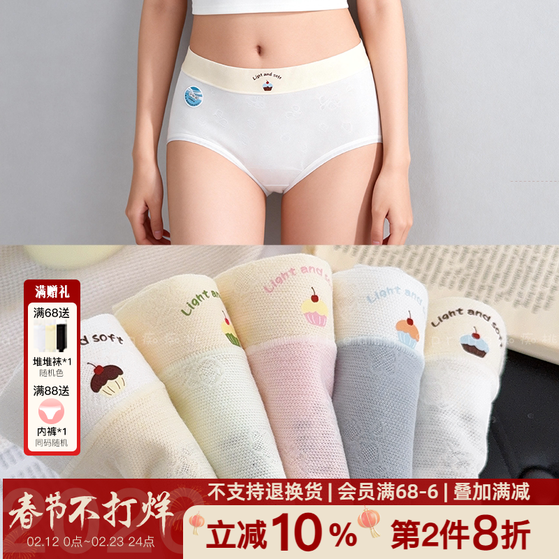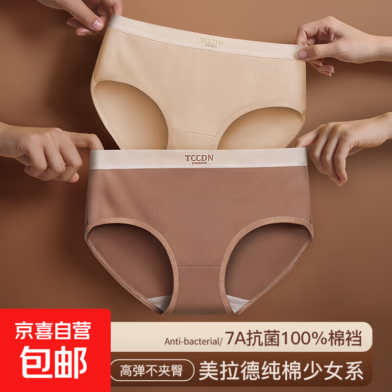 洁丽雅纯棉女士内裤2025新款少女生A类全棉裆三角短裤透气不夹臀