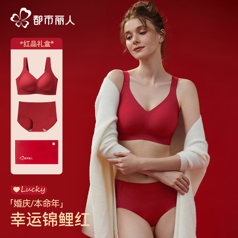 都市丽人本命年女士内衣套装大红色内衣内裤结婚喜庆无痕文胸罩礼盒装 鸿运礼盒装:无痕内衣+内裤 L -建议110-125斤