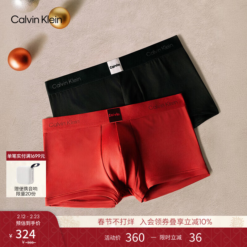 Calvin Klein内衣【吸湿速干】男士本命年新年红字母ck低腰防夹臀平角内裤男 6JI-火焰红 XL